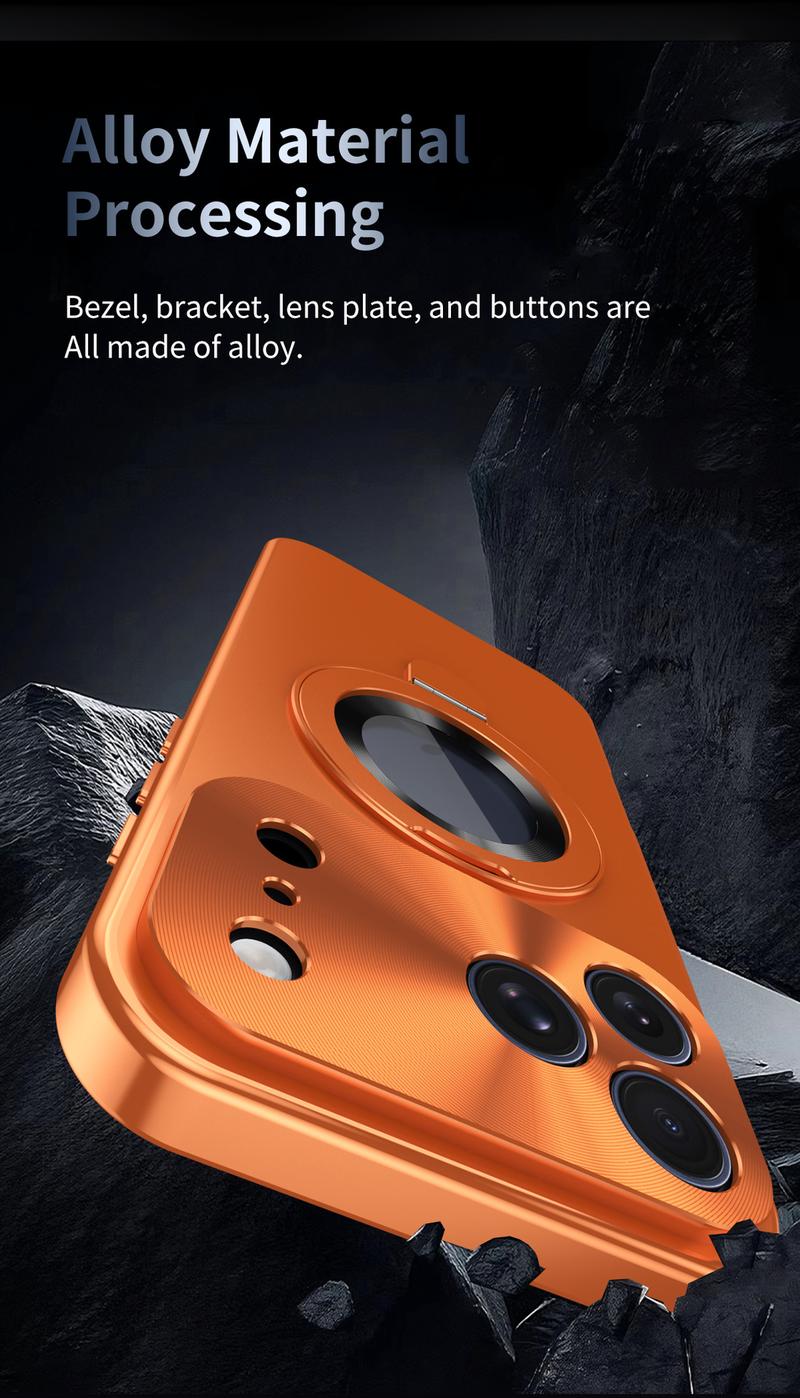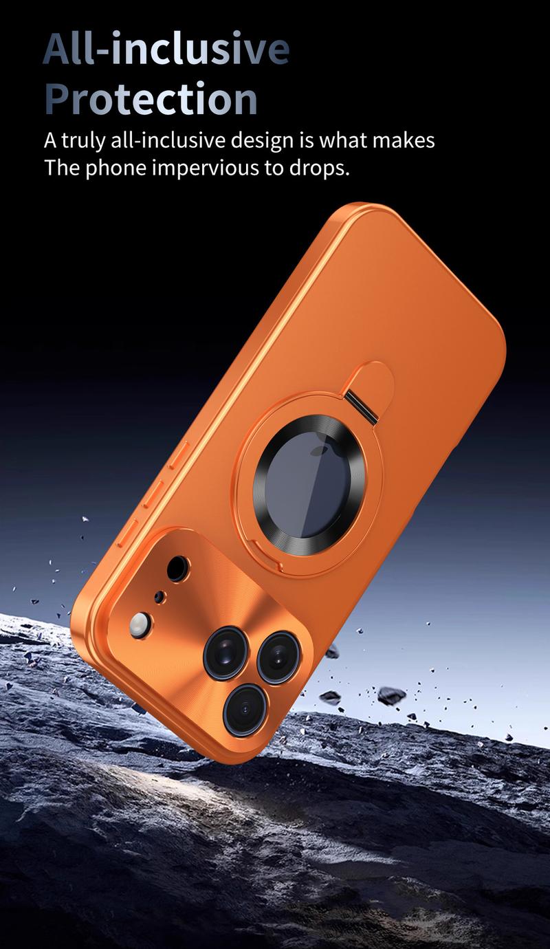 No es solo una funda protectora común: integra de forma innovadora un soporte metálico rígido, un panel trasero agradable al tacto y resistente a manchas y un marco anticaídas de protección total.